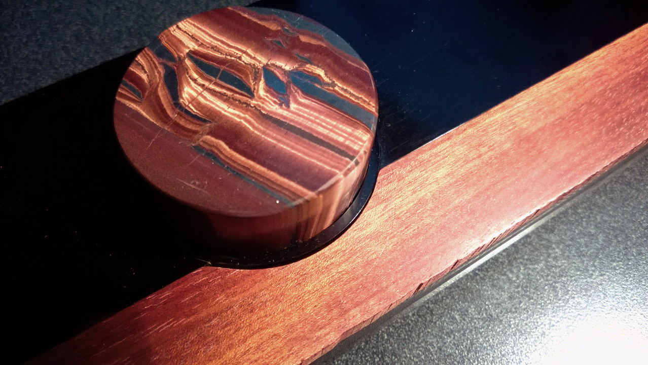 Red tiger eye knob (FYI not for T2) ...and a chunk of some nice blue tigers eye stone I just got, for to make more knobs....
