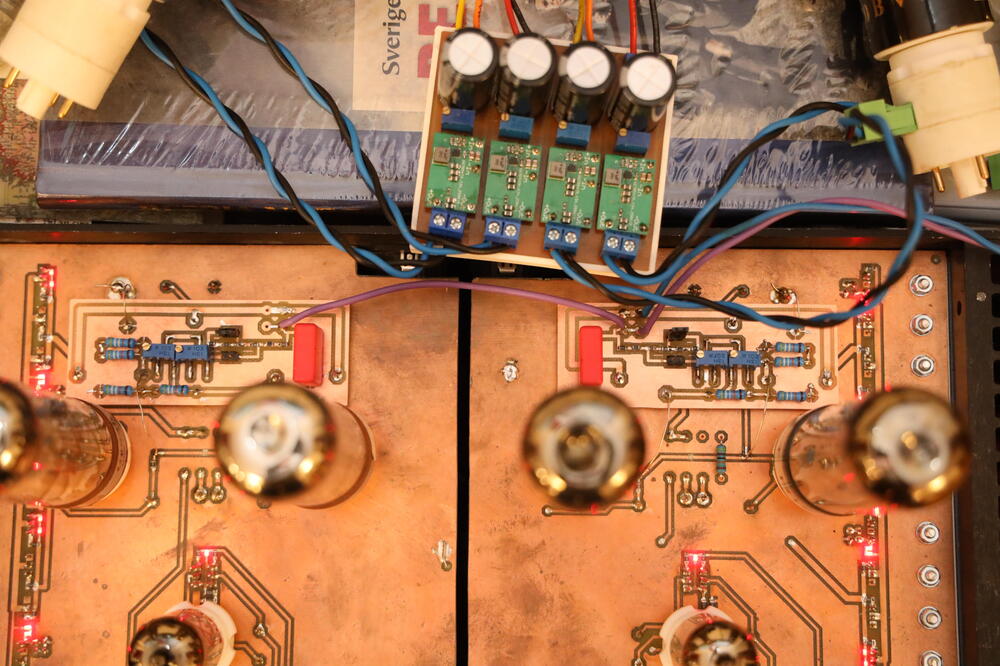 Three kinds of switching mode filament supplies made in my kitchen. Right: Traco brick, only 5V with some fine adjustment, designed by Kevin Gilmore and slightly modified by me. Left: DC-DC Step Down Converter XL4015, adjustable voltage and current limiter, have used it for 2.5V to 6.3V. Middle: TPS62913 Low Ripple Buck Converter (green board) My own design but done with help of TI datasheet (all info needed is there). Copper color board is an Elekit regulator with 2A3 and 300B auto detection. I’ve added a trimmer for fine adjustment of voltage. All three seem to work all right with my electrostatic amplifiers. I also have Pete Millett, Tentlabs and Coleman filament regulators. They are all bulky with heat sinks and produces a lot of heat. Yes, I do agree. Yes, at some point it (probably) will be a different matter. -