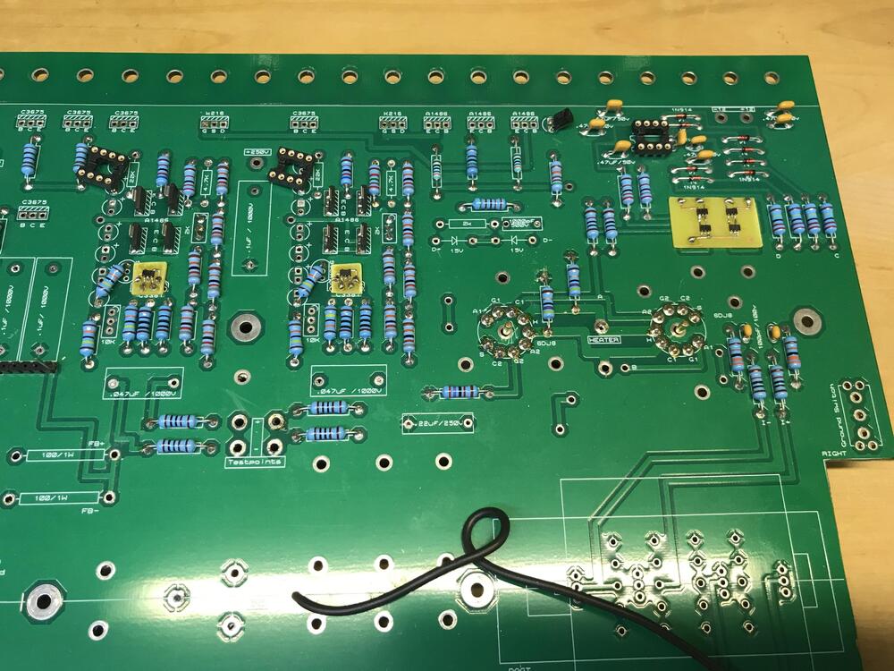 Thank you. Them pins looks very interesting indeed. Regarding my current project. Goal with it was to build a T2 on an original board with all modern components. After a visit in the ditch I returned to the narrow road. Rebuilt the batteries to original LED version on the board. Had to change some resistors as I reduced voltages - battery is 640V instead of the original 740V. Furthermore the change to fjpf2145 instead of 2sc3675 called for a Darlington par out of pair of fjpf2145 in batteries. Very easy to make a Darington pair on the original board. Yellow Teflon wire from base to a via on the board – perfect and the via has a perfect diameter. Some components (ksa1220, ksc2690,ksc1008 and j112) have different pin out as the original ones so I twisted their legs to fit the board. Thanks Michael (mwl168) for how to bend legs on the ksc1008. Bottom line: I believe I’ve built a decent version of DIY T2 with all modern components. I’m satisfied and am about to make myself not so sober (it’s Friday evening). P.S. some problem with one channel, unwanted noise and hum. Happens now and then if you have T2s…