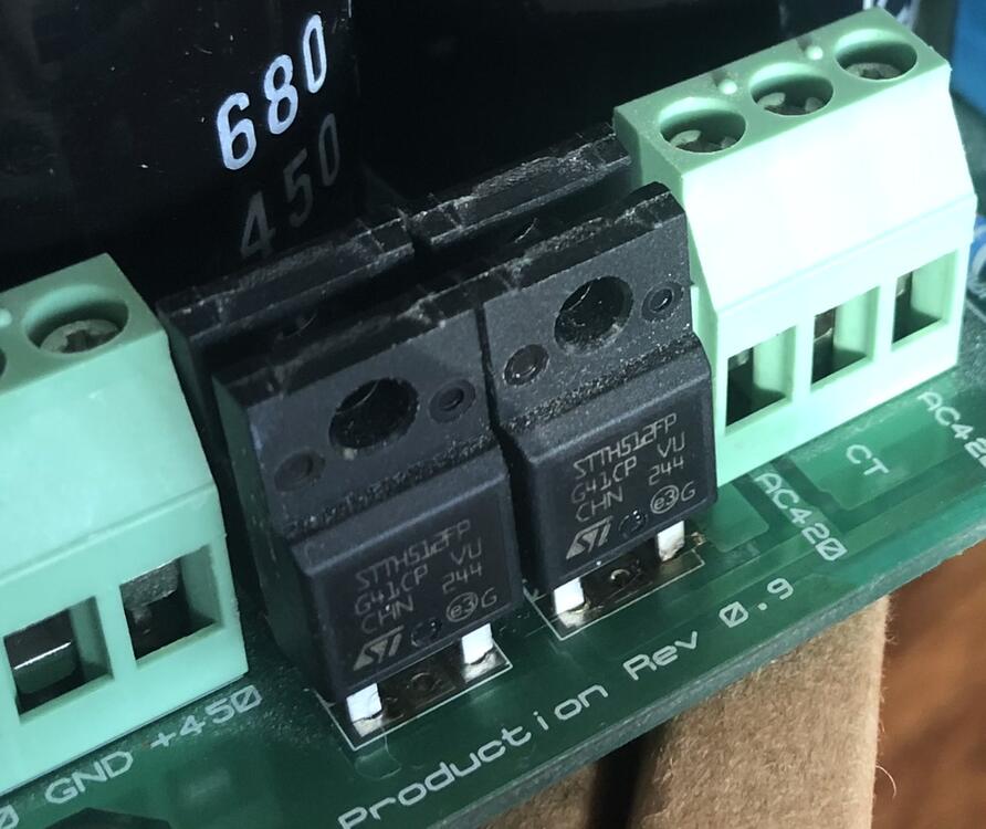 It took me 7 years to build my second kgsshv, or so I thought, and no cigar as I powered this one up. I have a problem with the positive, HV rail in the power supply: I measured ~10V instead of +450V. I need some help to troubleshoot. Couple of things: 1) when powering on, after long discharge time, I get sparks in the neighborhood of the 680uF/450V caps for that rail. This lasts for a second, and goes away. First time i switched off right away, but when I turned amp back on soon after, no problem... if one waits more than 30minutes, then small sparks come back on first “ignition”. No smoke. 1b) After close visual inspection, two legs of the bridge diode for this side of the PS are a bit darker than the others (bronze close to pcb rather than silver). These are the legs connected to the top plane of the pcb. Using a multimeter, diodes seem to be ok for allowing current flow in one direction and not the other (using diode checker on multimeter). There seemed to be missing copper pads top of board (if there was any). Above the 0 in the rev0.9. 1c) I confirmed the two legs, one per diode, are not connected to top plane. Did I vaporize copper at first power up, or was there even any (I assembled the ps years ago, never checked before assembly as I solder from bottom face) 2) output of transformer measures 493V AC. (Both sides) 3) negative rail of PS OK (-453V out of PS). 4) PS board is regular size (not mini), rev v0.9. Any help would be greatly appreciated. Thanks.