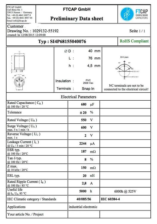 I just had one of the main capacitors blow in my Carbon which is a few years old and has been lightly used. I think its the input cap of the -400v board. The Caps are from the Groupbuy a few years ago (2015 OMG). F&T Germany 550V 680uf. Toroid is 2x 117v (234V AC In) and for the HV 2x330V out. Resistors on the boards for 400v configuration. Any idea what could have caused this?? Usually caps only blow from overvoltage?? The music was still coming through flawlessly after the bang, but I turned it off right away and checked the internals. I hope the other components are ok. Maybe it would be worse if it was the output cap. I am not 100% sure if the other 3 Caps may be slightly bulged or if they came that way from the factory. I will replace all 4 for sure. Does anyone have a partnumber from mouser ready? if I remember correctly a bit less capacitance would also work, right? What is reasonable? Edit: I just read some of the previous post with a similar problem. Maybe these caps are really trash... Edit 2: Just found the datasheet from the group buy I would probably order 4 of these (only 560uf, but should be enough) and hope everything still works after replacing... https://www.mouser.ch/ProductDetail/KEMET/ALA7DA561EF550?qs=IS%2B4QmGtzzosEBZF0Z4Lbg%3D%3D