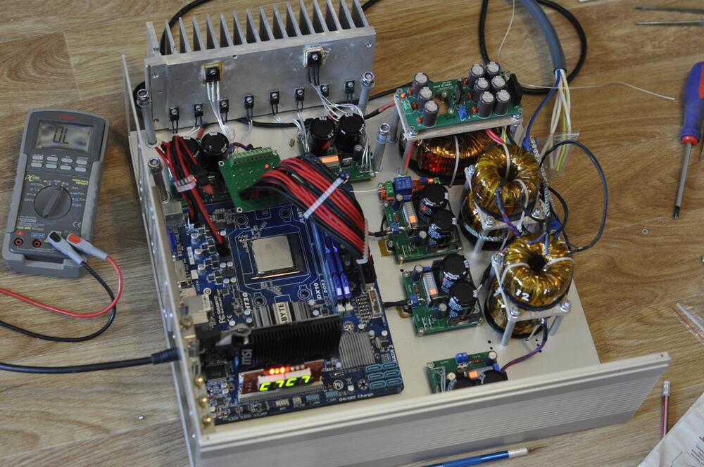 Not so far ago built HTPC. 5 independent lines on Salas L-Adapter https://www.diyaudio.com/forums/power-supplies/336685-adapter.html MB: +3.3v MB: +5v MB: + 12v SSD: +5v CPU: +12v JCat Femto PCI-E USB card, deeply customized Linux for low latency (without RT kernel).