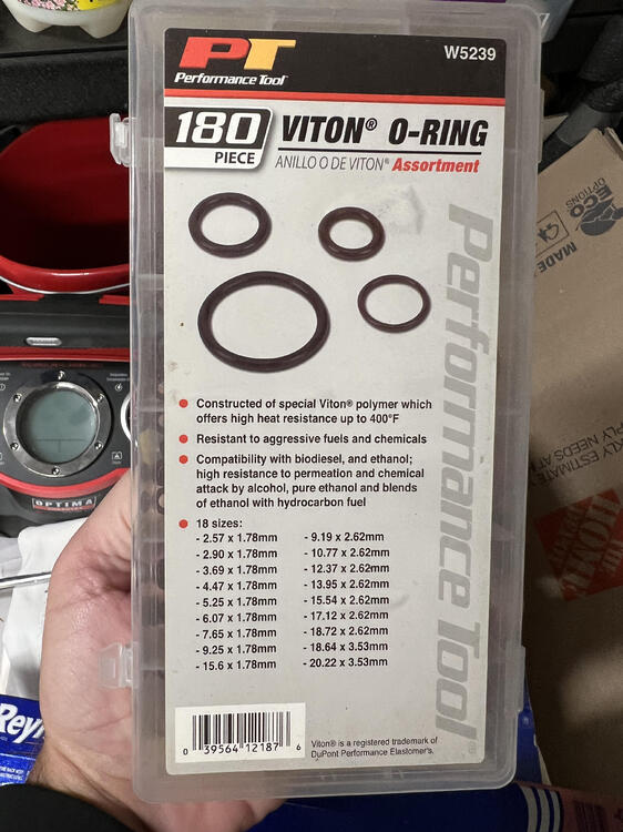 Kevin has the correct idea IMO. I used to have to deal with o-ring issues, frequently on a system designed to support consistent nitrous flow from the bottle with either CO2 or O2...the o-rings would eventually deteriorate. Learned a few things...scuba shops and paintball shops are pros. They carry a compound that when applied it makes the rubber swell and often will be a fix if you do not have a replacement o-ring. A kit like the one attached (note the viton material handles temp swings and harsh liquids like race fuel well) I found to be well worth the money. Best of luck, Jacob! Sam EDIT: PS...I would be more than happy to send any that might work for you.