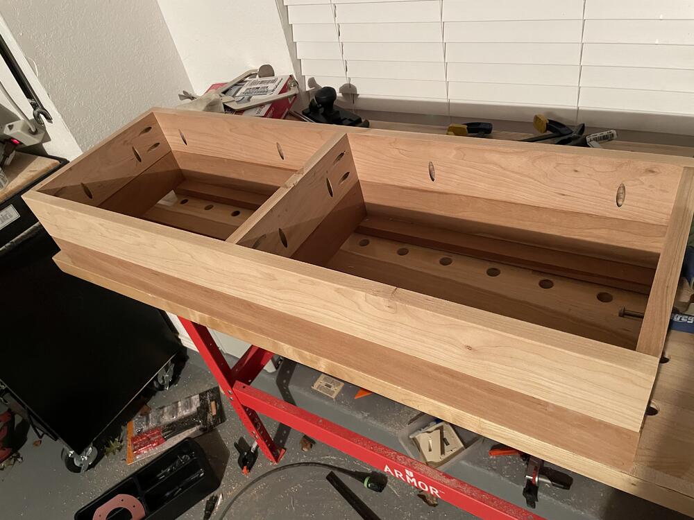 I made a thing taller. It took one BEI in Kreg screws to do it, and probably a better way to do it, but... - you know what they say, when you have a hammer everything looks like a nail. My record cubes will be just enough higher that I can plug my cleaner in behind them. (this is a view of the bottom) Depends what kind of tarp.
