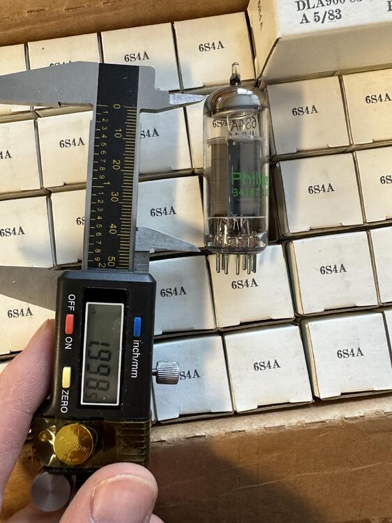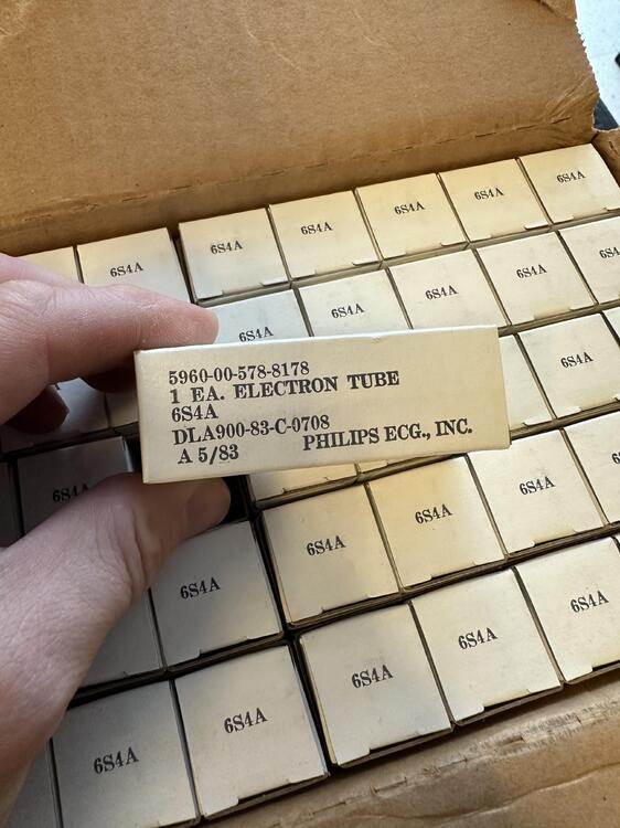 This may not happen again..here is a never opened box of Philips ECG 6S4A tubes, USA made, delivered to a defense depot in utah (dry climate!) in 1983 very curious to see how they match think the box is actually full of tubes?