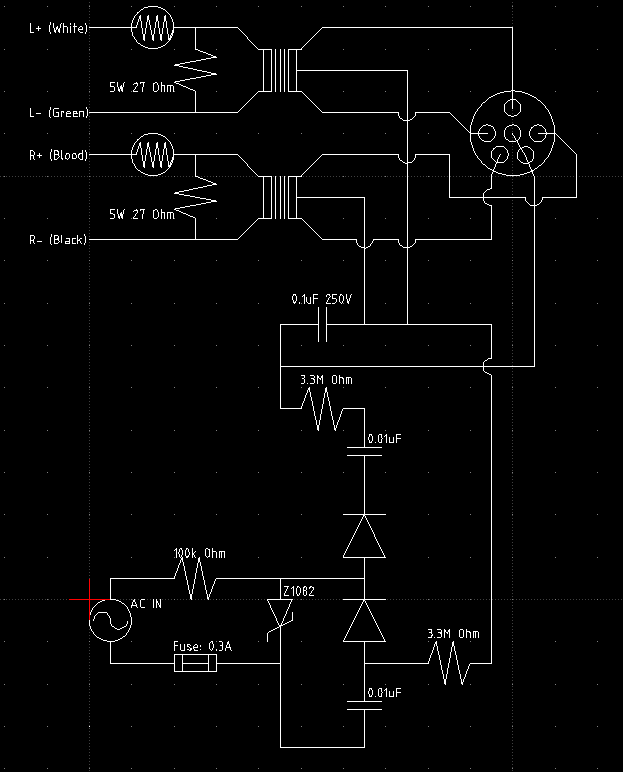I could swear i had the whole schematic sheet for the original SRD-7 but i don't seem to have it at hand. Anyway, just the drawing of the SRD-7 schematic, SRD-7 Mk2 and SRD-5 official schematics below, and someone's hand drawn SRD-6 schematic. Notably the SRD-5 has 5k resistors on the outputs. I had sworn i saw spritzer or someone say they were only used in later amplifiers. At any rate these seem to be of not much important and will probably not be included. The 5, 6, and 7 all have a 30-ish ohm resistor across the transformer primary while the 7 Mk2 (and the 7 Pro) do not. My SRD-4 doesn't either. I have seen some people advocate for these to be present. I presume it is to provide an alternate path for ultrasonics. It seems like the board should support these, but the BOM should list them as optional. I'll make sure there is room to just harvest them from your original board, as there's a good possibility that the old Stax corp used nonmagnetic resistors. Haven't checked. A lot of people feel that the PTH devices are unnecessary and a potential source of distortion. The 5, 6, and 7 had 4.7-ohm PTH devices and the 7 Mk2 (and pro, and SRD-4!) have a pair of 10-ohm in parallel. Many people would prefer to just use a 4.7 ohm 5W resistor and be careful with the volume knob on their amplifier. Maybe new PTH devices are less noisy? I can't say i hear the distortion. I think perhaps the board should have options for both, perhaps overlaid so that it is impossible to install both of them. I have identified modern equivalents of the PTH devices. ZL01-ZL04 are MOVs. These are only found in the 7 Pro and 7 Mk2. A lot of early stats and trets had these inside the ear cup. I have heard that back in the day some people wondered if they were harming the sound somehow. I think the board should accommodate these and the BOM should specify that they are optional. There's some variation on the capacitors used in the voltage multiplier and based on prior discussions with spritzer and others i think we can just specify 0.1uf 250v, wima MKS4 is what i have been using so far. The 0.01uf cap between the transformer center taps and the bias is in some and not others, and there seems to be a consensus that they should be removed. Some schematics specify 4.7M or 5M for the bias resistor, some specify 2.2M. I am pretty sure the consensus is that 4.7M is the better value. A resistor that is specified for high voltage may be warranted here. It's not much more expensive than others from Mouser. The voltage multiplier diodes are nothing special, 1n4007 will be fine. There are reports of leaky diodes from china, so, use diodes from a major supplier. The zeners. In the official schematics that i have seen, they always use the symbol for a bidirectional zener, what is more commonly called a TVS diode these days. There is some confusion about these, but Semitec manufactured them until 2005 with that part number. There are modern equivalents, or we can use a pair of 100v zeners. Some people are saying that the SB energizers should use a unidirectional zener but i don't know what their logic is. At any rate, if upgrading a 5, 6, or 7, you have the option of harvesting the original component and using it on the new board, strapping a wire across the position for the other zener.
