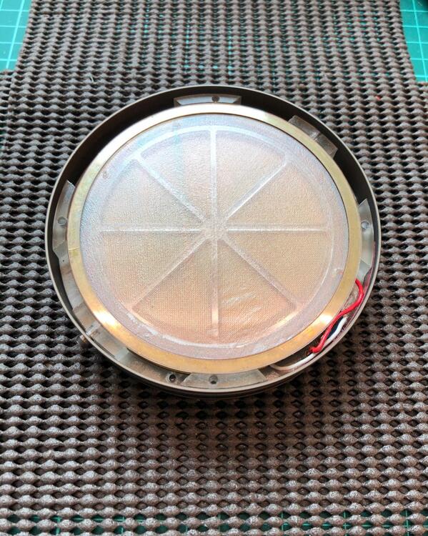 An omega arrived for imbalance repair. Pretty messed up inside with bias wire directly soldered on brass ring, faultly installed panel and worst of all a shadow seen at the part of the rim of the diaphragm , shown as a lunar shape at the bottom of the driver in the photo. Probably indicating a tear along the rim of the diaphragm. Treasure your omega(s) when they are still working ......