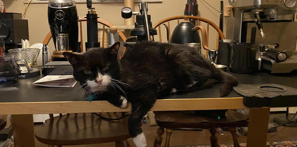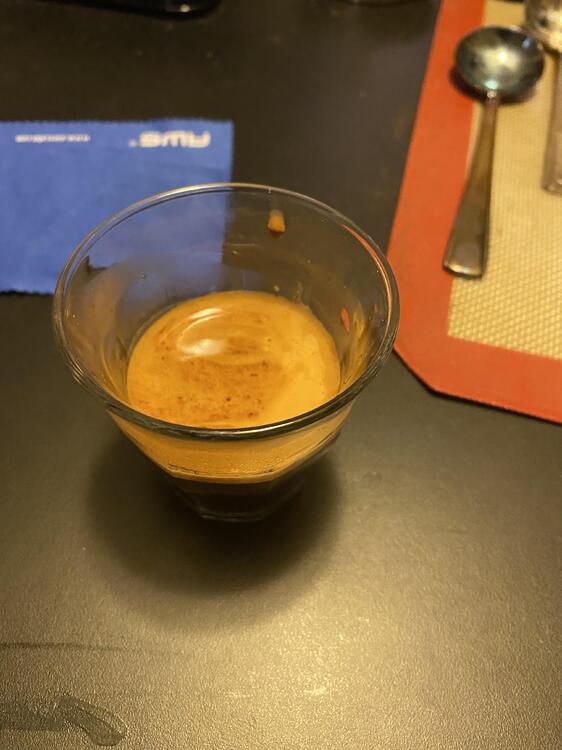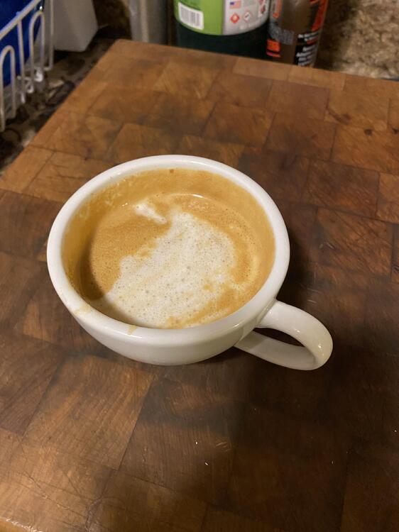 I pulled a truly wonderful shot. Last of an Ethiopian Guji I got in NC in the fall (remember I freeze beans). I can’t complain about it at all, which is rare for me. Bright, complex, sweet, smoky. 1:2 (19.5 in) peak 6, slow pressure draw down. I’m finally dialing in the Flair, I think.