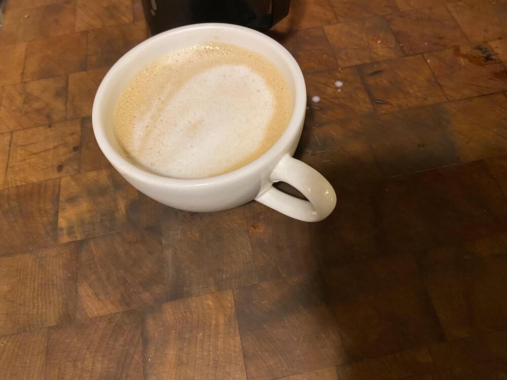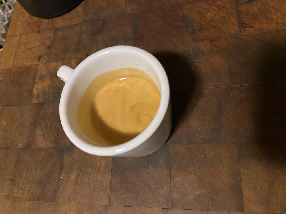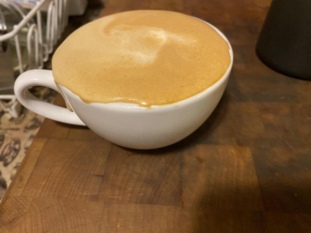Oat milk cappuccino made me grin. Took a sip before I took a pic. I mean, hah. That’s like really good risotto: ain’t had better than at home. 20:45 in 48, 7 bar maximum with the espresso. Whatever amount of oat I steamed, which was just ice cream on the bottom and foam just hard enough to be cappuccino on top. Oh, wow it was good. I rarely grin on things I make, as I’m never happy with anything I do.