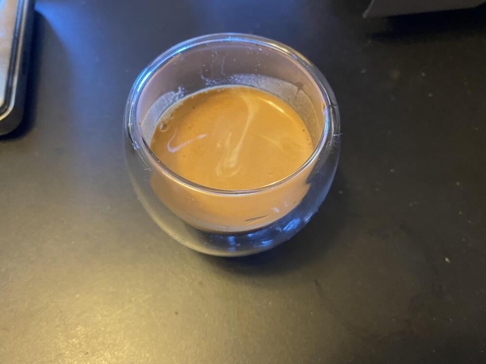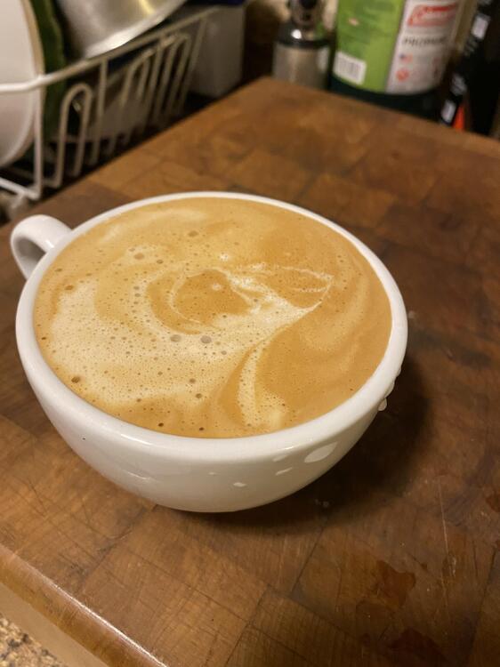 It worked out okay, but one thing I can say with surety is that my Breville and my Flair 58 do not take the same grind size. Also I’ve gotten used to the huge amount of power the Bellman has for steaming. Having said that, this is a delicious latte. It’s ugly, but I got a very good mouthfeel from the oat milk, and there is no bitterness in the shot despite is stalling out HARD. Let’s call that a long pre-infusion. I had to do some mitigation, in process, temp surfing etc., but I hate wasting coffee or milk if I don’t have to. With a lid on a paper cup I would have left any cafe I know happy. But it’s boy ugly.