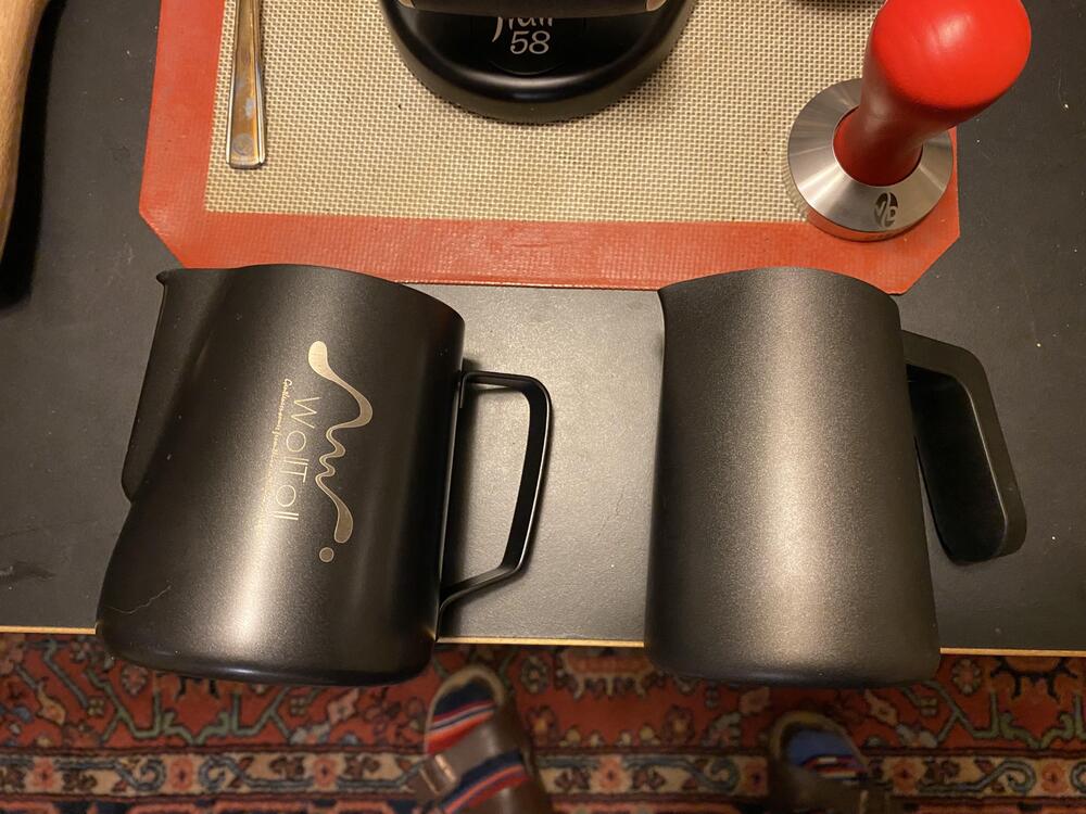 Nice, Sam! I think that looks good. Though I do suggest doing a longer shot. In a 58 mm basket I’m like 18.5 in to 45 out in a little under 30 seconds (if I do all of my stuff correctly anyway). That milk texture looks good; are you using whole? If you want a real challenge get some soy milk! And that coffee table was my dining room table (it’s just a work table from IKEA; it always had a table cloth, so why get something nice looking). I also live alone and haven’t, uh, thrown a lot of dinner parties in the last 2 years (no idea why) so I figured it was more useful for this than just being a place for cats to sit and stare at me! It has really made life easier, having the space, though I have too much shit to quite comfortably keep everything I use regularly on it, now.