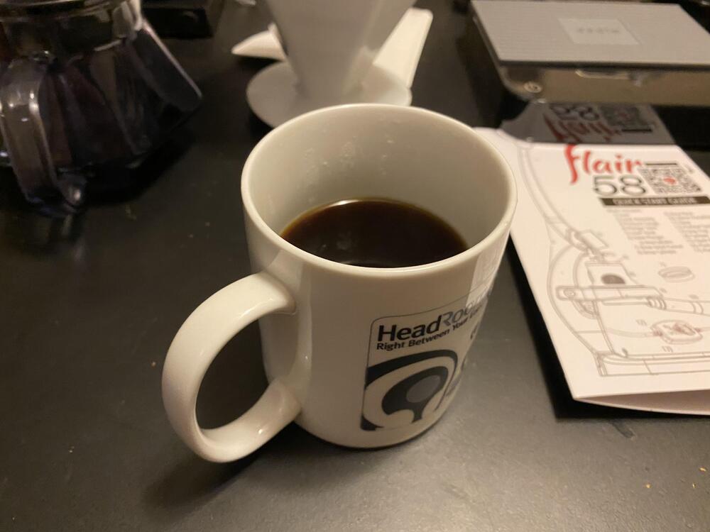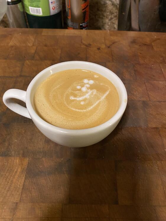 Still don’t have the Flair 58 dialed in (still going too coarse; getting turbos, though less so now), but I have the Bellman figured out. I could have done latte, but of course I don’t do latte art. The smug smiley face doesn’t count as latte art. Not terrible. Not bad for the second time I’ve used the Flair and the third time I have used the Bellman.