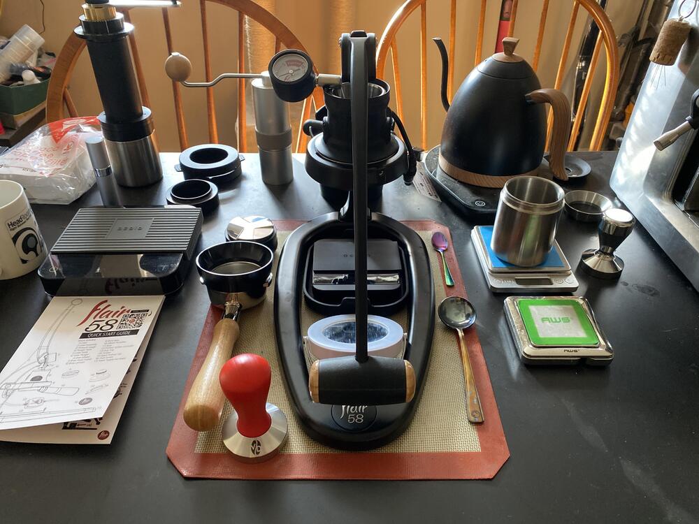 I’m sure I’ll be making bad espresso tomorrow morning with it! There is always a learning curve with everything. Finished set up. Not as pretty as the Bianca, but not bad. And yes; I chose my kettle because it would match the 58.