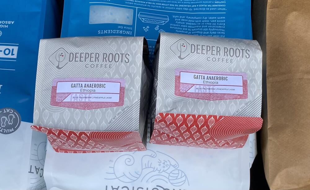 Fancy coffee (and fancy kitty litter) purchased. Coffee roasted on August 26th. No idea when the cat litter was made.