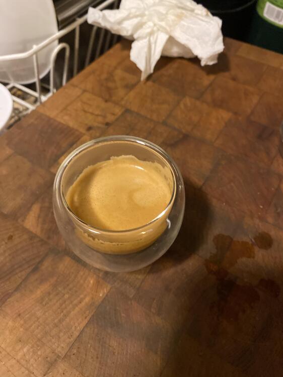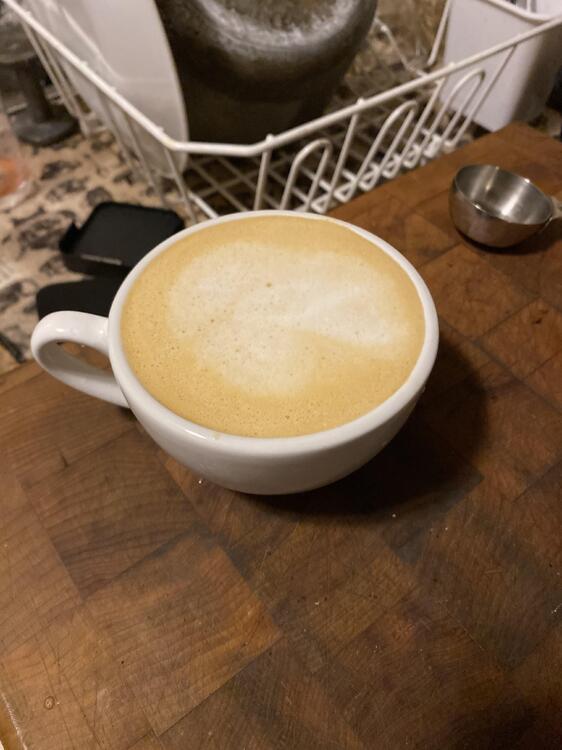 First drink pulled off the refurbished machine. I went WAY too coarse, but that was my fault: it’s because I’ve gotten used to manual espresso. Oat milk, so any “art” was accidental. But I got decent stretch. The Option-O grinder will take me as fine as I want to go, down to “this won’t work for even Turkish.” I went a bit finer than I do for the Flair. Should have gone a bit more. I managed to make a fast lungo (I don’t want to make a lungo fast if I can help it!). it was drinkable. A run of the mill “if a random coffee shop handed this to me in a paper cup I would be fine with it” latte. Will be better tomorrow.