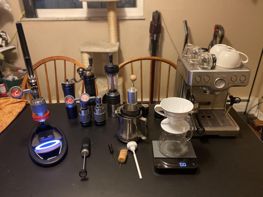 The Cyimbili Rwanda is delicious: V60 15:1, 4 minute draw down, OG* at 1200. First time I’ve used the OG for pour over: I guessed 1200 and got it about right. Just delightful. It smells like it has cocoa powder, and is balanced and sweet, with a lot of Meyer lemon, but it’s not super acidic. Drying, but not too twiggy. Round. My mouth feels like I have had a good cup of Darjeeling: you know that puckered sensation in your soft palate that lingers? The sweetness lingers too. Recommended. Thanks again, Covered_Ears. *like any scientific instrument, the OG is complicated until you get it, and then it’s easy. It’s an exceptionally good grinder. I recommend completely disassembling it and reassembling, and calibrating, if you get one: not because it needs calibration out of the box, but to understand how it works. The “recommended” way to thread it back is not necessary if you aren’t a fuck up: just don’t fuck it up. I consider it a design flaw, personally, but it’s not something you’ll need to do much over the 50+ year life span of the grinder.