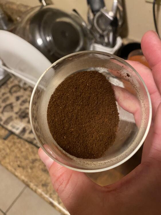 This is what frozen beans get you. Yes, sure: the crap burr grinder I’m using has been modified. I designed and 3D printed a new burr holder. It’s still a piece of shit. This is semi-fine for pour-over, ground from frozen. Just three weeks old crap from somebody I like well enough. No fines, no boulders. Frozen coffee beans.