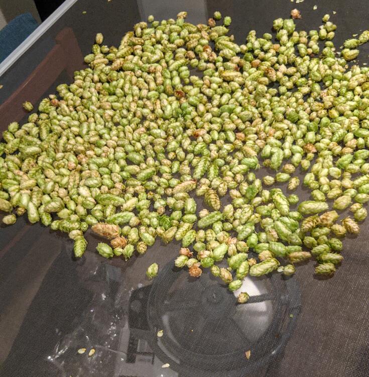 Hop harvest 2020 Now they are drying Not sure of the next step, but I am sure I am moments away from beverage.
