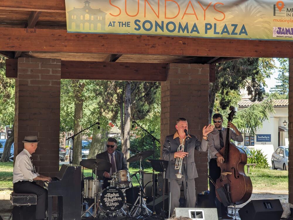 Hello Sonoma ! Swing daddy! , With the Alpha Rhythm Kings. They moved one couple enough to leave their blanket and dance.