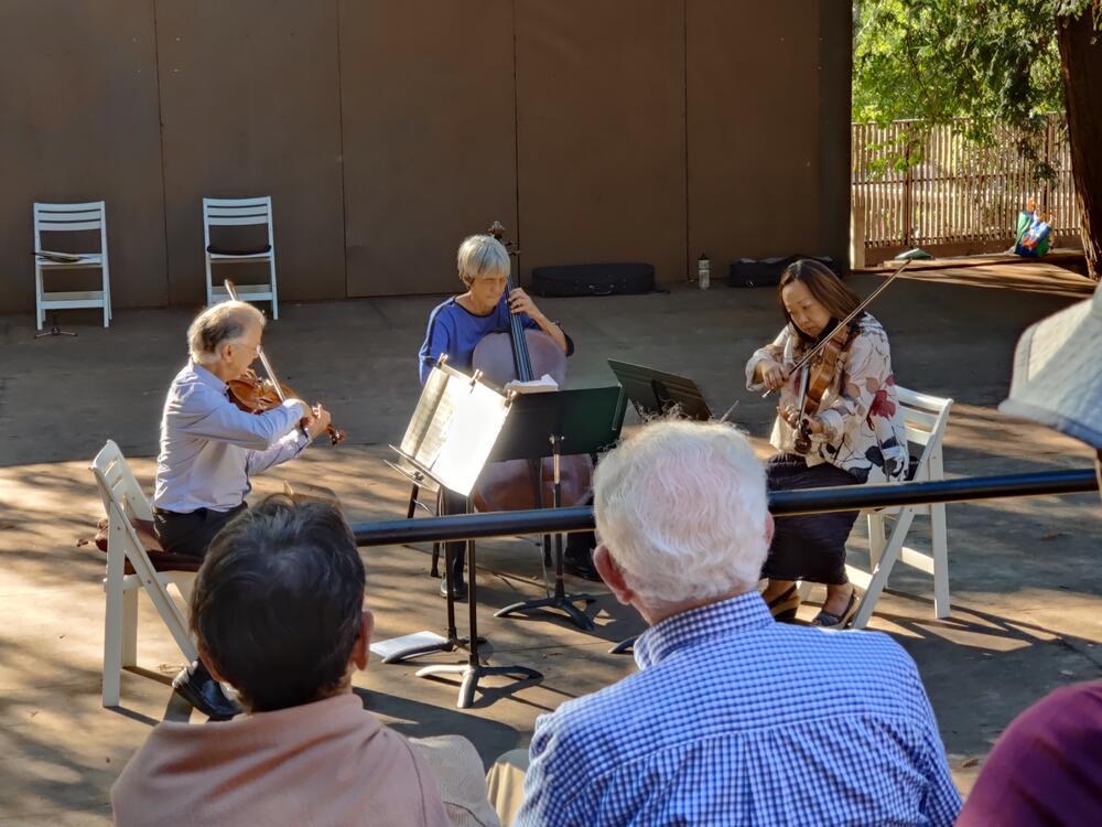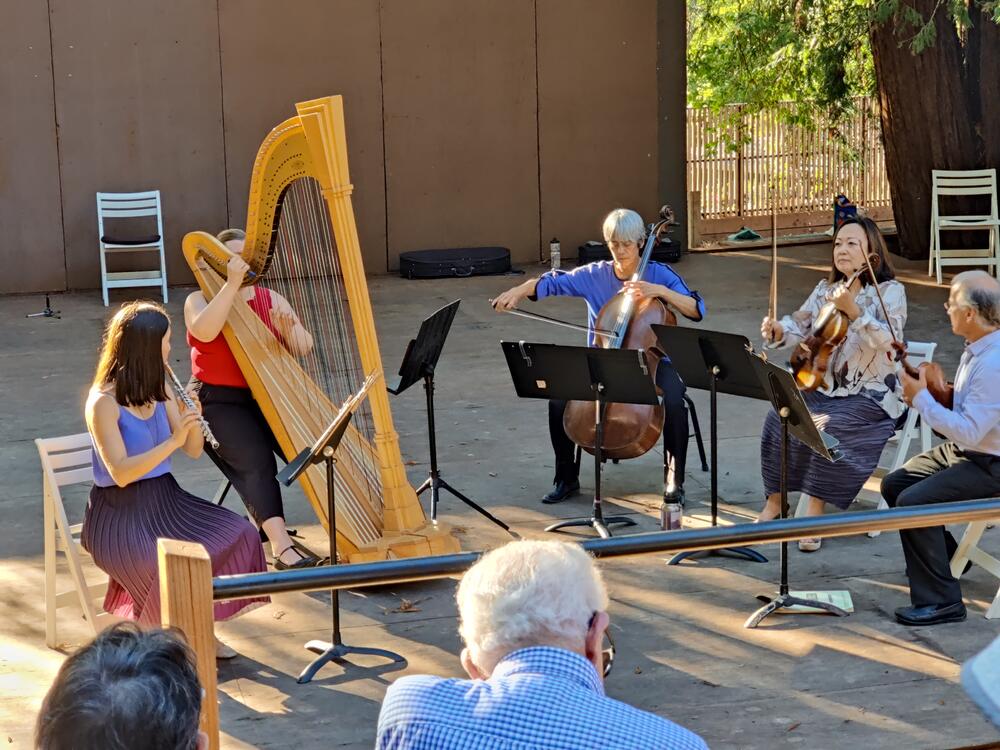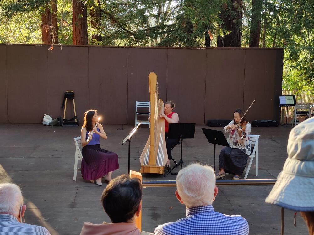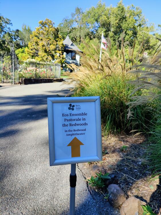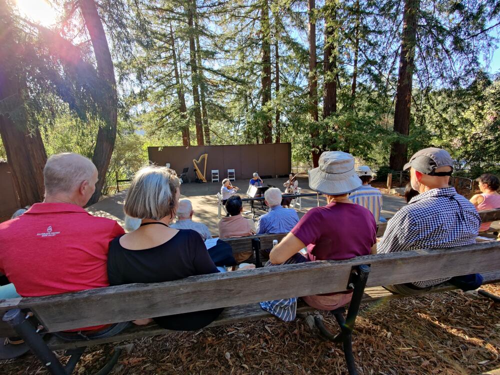Joined the aesthetes of Ross to see "Eos Ensemble: Pastorale in the Redwoods Bask in the dappled light of our rustic Redwood Amphitheater to the sounds of a string trio joined by flute and harp in this program of chamber music with renowned local musicians." A very pleasant way to spend a summer evening