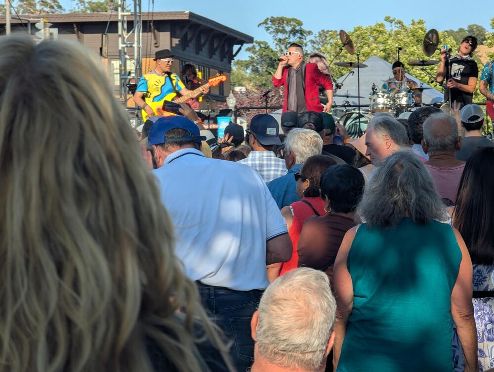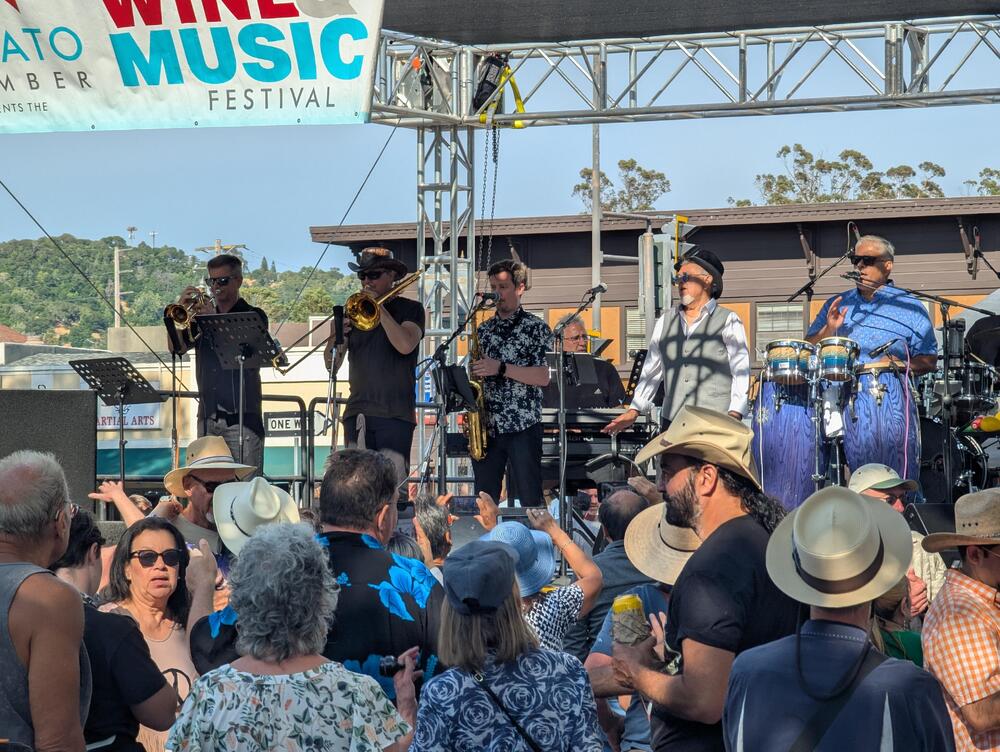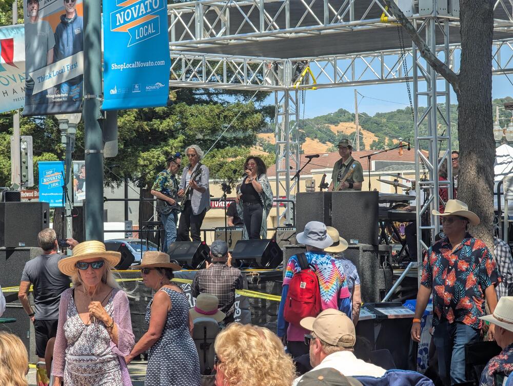 Back in Novato to see aja vu and their commendable version of Steely Dan Then they bought out the horn section for a few Chicago numbers And threw in a horn solo and drum solo for good measure. A fun time with all the hits.