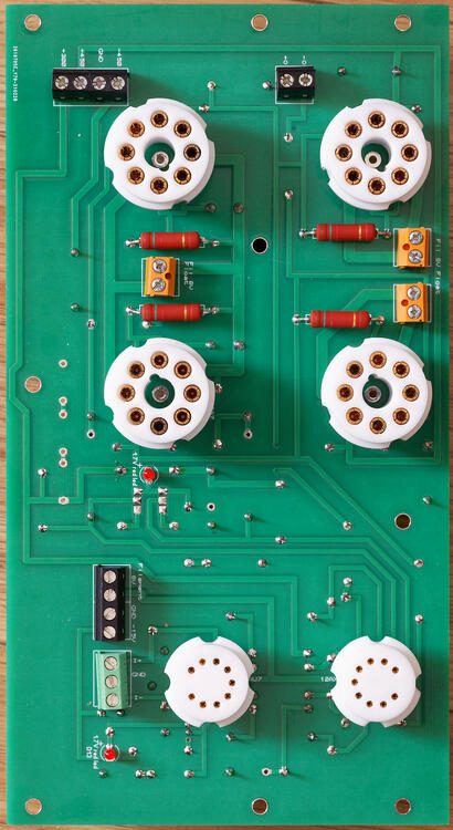 24. I built a blue hawaii with golden reference HV supply and the simple voltage regulator based lv supply built into the golden reference hv board. Later I added a golden reference lv supply which improved the sound a bit. I also replaced the diode bridge on the LV with a synchronous rectifier for even lower noise. The blue hawaii is a very good amp. Far better than anything I had listened to previously and was a quite straightforward build I did not modify any of the gerber files. I did solder the leds, the resistors you need to measure the voltage across to set the constant anode current and the adjustment pots onto the top side of the board for easy checking and adjustment. I managed to fit everything into one 400mm deep disapante case The T2 build is by its nature almost twice the size of the blue hawaii and of course more expensive. The pcbs are bigger, there's more values and components and more power supply rails and multiple transformers etc. I also had to modify the gerbers to fit my build style, selected volume pot and the case I wanted to fit the amp into. The T2 is just magical and is my daily listening device. If you only have the time and resources to build one build the T2 and get the best to begin with. I don't regret building the blue hawaii but I have not listened to it since I built the T2. I found the T2 build to be big but not difficult. I read the forum posts carefully followed their advice and used xicon resistors and ultrasonically cleaned the pcbs. I also measured every component with a LCR meter and transistor tester etc before soldering them in and checked everything multiple times... I even tested the zeners and diodes and matched all components between channels and between + and - halves of a channel. I actually finished the pcbs about three weeks before I switched the amp on.. I got locked into a cycle of checking and rechecking everything and was convinced I would get sparking or noise batteries. So far I have had no issues at all with the amp and the initial fear I felt from reading the forum posts on failed T2 builds has dissipated. most importantly the T2 has 4 more glowing valves than the blue hawaii and so looks better in the dark... but then the megatron has even more valves