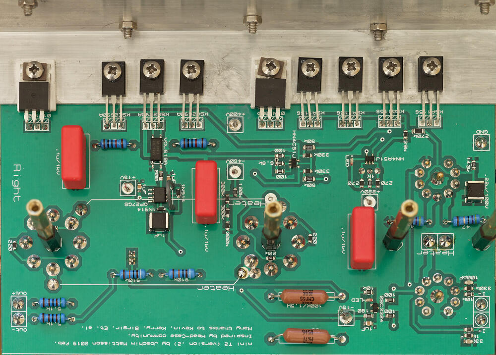 I did the flip 🙂 the small signal tubes are at the front but the labels on the pcbs for left and right and now wrong 🙃 I have the input wires going straight from the back to the tkd pot in the middle of the front panel and then nice short wires from the tkd to the boards inputs... heater wires route around the edge of the pcb close to the heatsinks. So far with the volume all the way up zero listenable hum.
