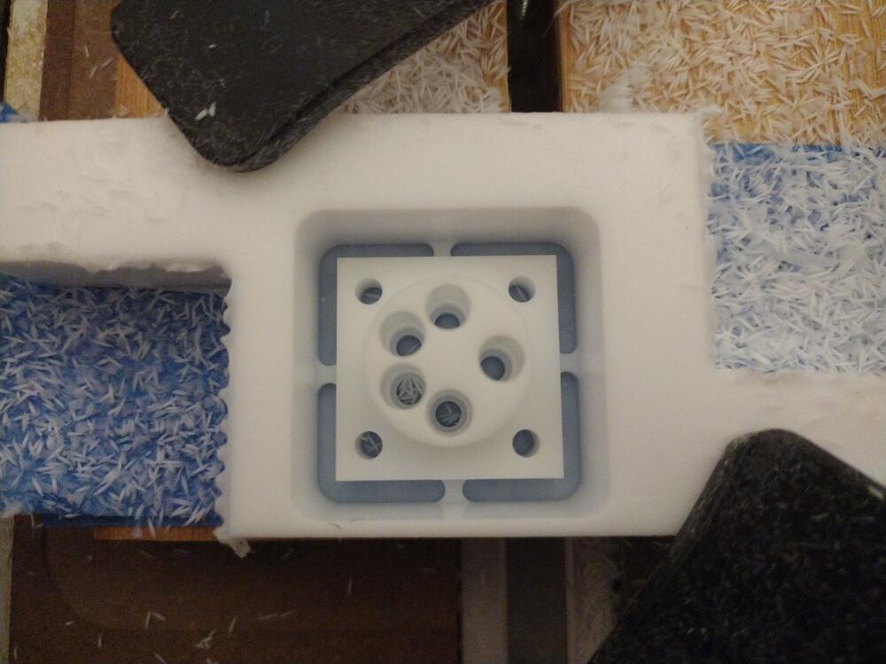 First attempt at a complete front panel. Single flute 6mm end mill and 0.1mm V bit used. Depth of cut 0.02mm on the engraving. I also used tape and CA glue as the hold down method for the first time - I really like it. Much less vibration and far quieter when cutting in the middle of the work piece compared to just clamping the corners. As usual no deburring or finishing pass. The surface finish on the volume pot pocket is silky smooth - the photo does not do it justice. Very happy with the results. Not so happy that I have zero artistic talent for cool looking front panel designs.... Another go at a Stax socket with the better quality end mills. Much better surface finish than my previous attempt cheapo mills and I'm using faster feeds and speeds this time. Just shows that a crap end mill gives inferior results even on soft plastics. There are no burs around the edges of the cuts and the surface is smooth. -