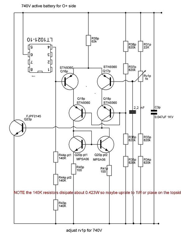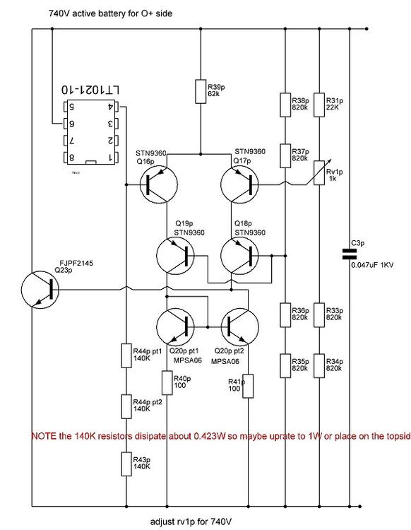 Still waiting for last parts.... 🥱 And waiting for them to be delivered, I and my friend Dmitry decided to tests a performance of the active battery at hight frequencies. The scheme of the stand has been given by @Kerry. Thanks! We just slightly modified it. Safety note: we supplied the battery by a source completely decoupled from the mains. That is why our generator is alive. Be careful. All the batteries are set to 740V. The first battery is the original one with 2SA1486 -> 2SA1413 and 2SK246 -> 2SK208 and 2SC3381 -> HN4C51J. The first two pairs are the same transistors in different cases. Results of the measurements: 1. 130 Hz. Power off. https://ixbt.photo/photo/406668/17916TMfujOMyVu/Hgj7GE8yHX/1514651.jpg Amplitude is about 200 mV 2. 130 Hz. Power on. https://ixbt.photo/photo/406668/17916TMfujOMyVu/Hgj7GE8yHX/1514652.jpg Amplitude is about 100 mV 3. 1000 hz. Power off. https://ixbt.photo/photo/406668/17916TMfujOMyVu/Hgj7GE8yHX/1514653.jpg Amplitude is about 200 mV 4. 1000 hz. Power on. https://ixbt.photo/photo/406668/17916TMfujOMyVu/Hgj7GE8yHX/1514654.jpg Amplitude is about 140 mV 5. 10 kHz. Power off. https://ixbt.photo/photo/406668/17916TMfujOMyVu/Hgj7GE8yHX/1514655.jpg Amplitude is about 90 mV 6. 10 kHz. Power on. https://ixbt.photo/photo/406668/17916TMfujOMyVu/Hgj7GE8yHX/1514656.jpg Amplitude is about 100 mV 😨 The questions: Shouldn't there always be zero volts AC ? Shouldn't the battery always stay at 740V after powering on? It looks like the active battery in the T2 scheme suppresses low-frequency signal. It is a problem ? We decided to test another version of the active battery.