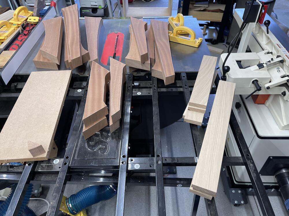 Did a ton of bandsawering for the legs and seat edges for the chair and managed to make a giant, expensive pile of weirdly shaped cutoffs I need to come up with a project for.