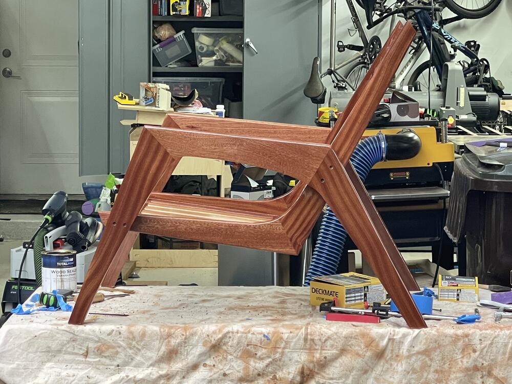 So I ended up putting the legs on but I am not entirely sure I trust the 150 hipster’s design to hold real people weights. It is just two areas of glue up and 4 2” screws per side (my addition). Trying to figure out some kind of reinforcement I can throw on the chair so I don’t get sued when it collapses under someone.