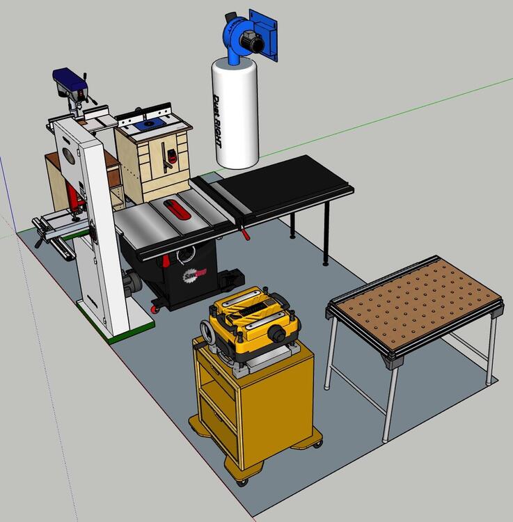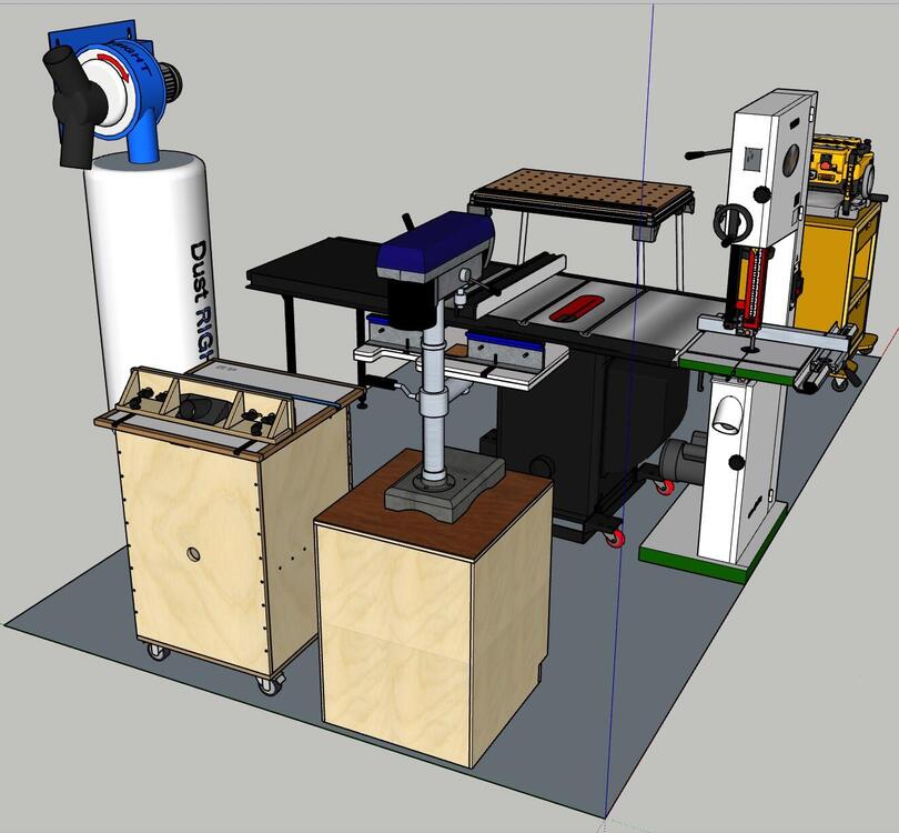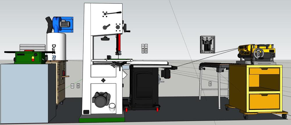 I actually have two dust collectors, a rolling 750 that sits with the drum sander on the other side of the garage and the 1250 hanging on the wall. I have been raiding the 3D collection trying to layout my equipment in my tiny space. Think I will have to turn the bandsaw and let it stick into the other space when I am using it.