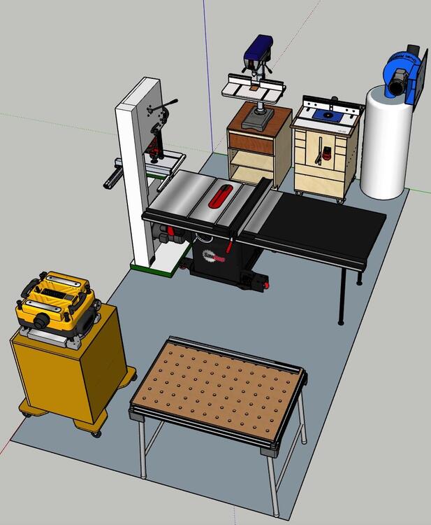 I was contemplating a single piece leg for both legs made of the 8/4 Wenge I have laying everywhere, I just could not figure out how to do that in Skethup. I really do not trust my skills, or lack of bandsaw though so I am looking at other ideas That being said, are you guys with the Hammer bandsaws using their blades or some Murican ones with proper measurements? Also, I want to see more of Naaman’s 3D shop. Do you have everything modeled in Fusion?