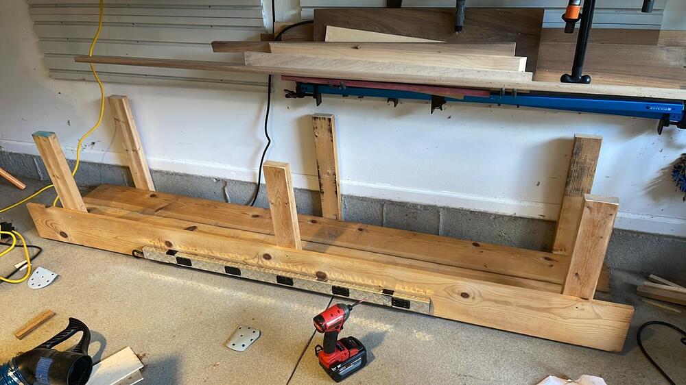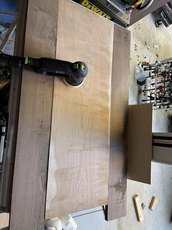 Did the jointing work (sort-of) for the top of the new dog crate for my basement. Walnut sides and cherry racing stripe. Only have a 6” jointer and the planer only goes to 13, so I am going to have to half ass it and try to let dominoes make everything flat. Walnut is pretty good but the cherry lifts in one corner.