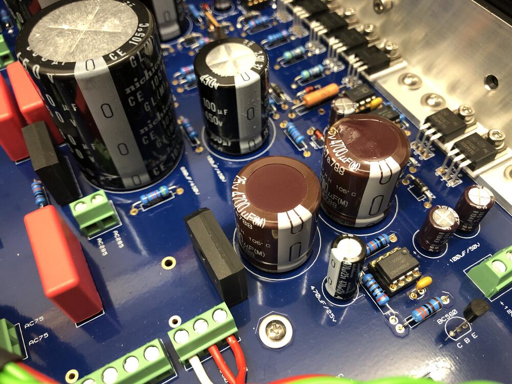 Finished the PSU and turned on the LV part only, first the trafo, measured, connected the secondary 30VAC winding to the board, measured 12VDC out perfectly. I was about to measure for the relais as I could not hear it clicking as I noticed both C21/C22 getting extremely hot. At this time one of them smoked. No idea how I came up with but those are 25V 4700uF United Chemicon. I think 25V might be on the lower side and 50V should be more appropriate. Any ideas? Going to swap them with Nichicon 50VDC 4700uF. Specs for the LV transformer including 30V-0-30V secondary winding were taken from this page: http://tee8tee4388.blogspot.com/2013/07/t2-diy.html