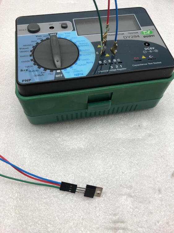 Adapter was the magic word. Made one with a 3-pin Dupont connector... very easy to swap the transistors. Thank you very much, champs! The 2cs3675 test somewhere between 1030-1120V on the DY294. Any special test procedures I should follow? Testing first with the Peak DCA75 checking pin's and type then the breakdown voltage with the DY294.