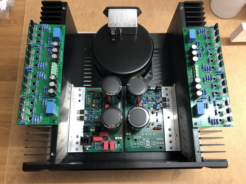 Just go 2x CFA3 boards and 2x GRLV (on one or even two transformers). For the amp you do not need to separate the + and - per channel, so 2x CFA3 boards is more than good to go. No need to put the CFA3 boards in separate cases, if you want to separate the L and R channels, put an aluminium divider in the mid of the amp case and use per channel umbilical on the back (off separate GRLVs and transformers in the PSU case), so basically going strict dual mono in two chassis in total. That's already more than overkill. You can have the headphone protector as well (for dynamic headphones, stats don't need that) and eventually the ZF/SS selector (which I didn't do). -