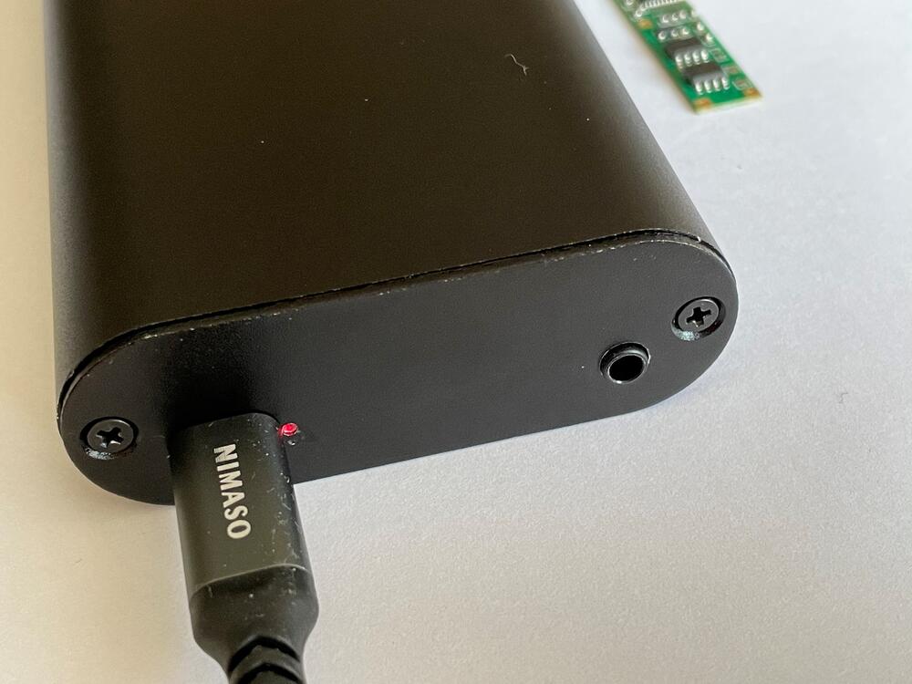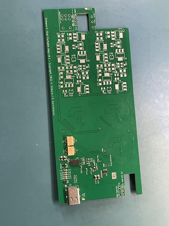 In other news, I just got back the analog input board and assembled the amp. The sandwich is 6.2mm thick + bottom components for a total of about 9mm thick. Batteries are about 10mm on top of the input board. Back plate on and plugged into USB-C (charging LED on) Why we did this... Portable music Just analog from my phone at the moment. DAC is up next PS The Weight is 12oz or 340g