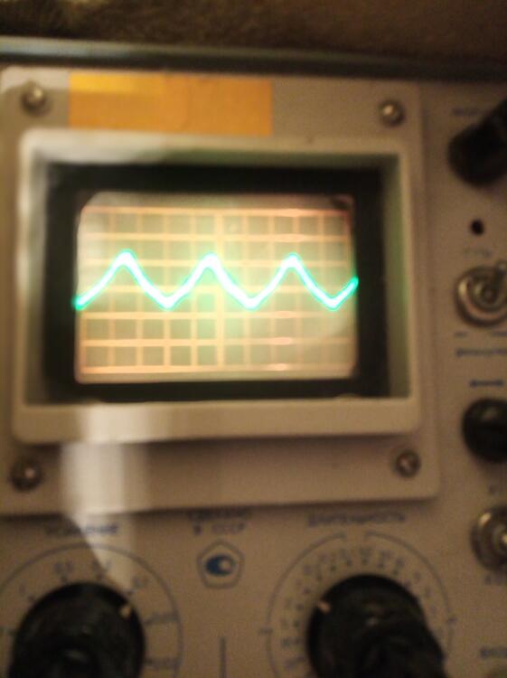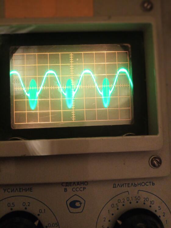 I checked everything yesterday, all resistors, transistors, no fault found, I put a different bulb, it didn't help, and was very upset. i planned to throw the board away and be done with it. but i accidentally discovered that increasing 100k leads to an increase in signal. The result is much more interesting than it was. the sinusoid is beautiful, not crooked. in the evening I will plug in my headphones and listen to how it plays....
