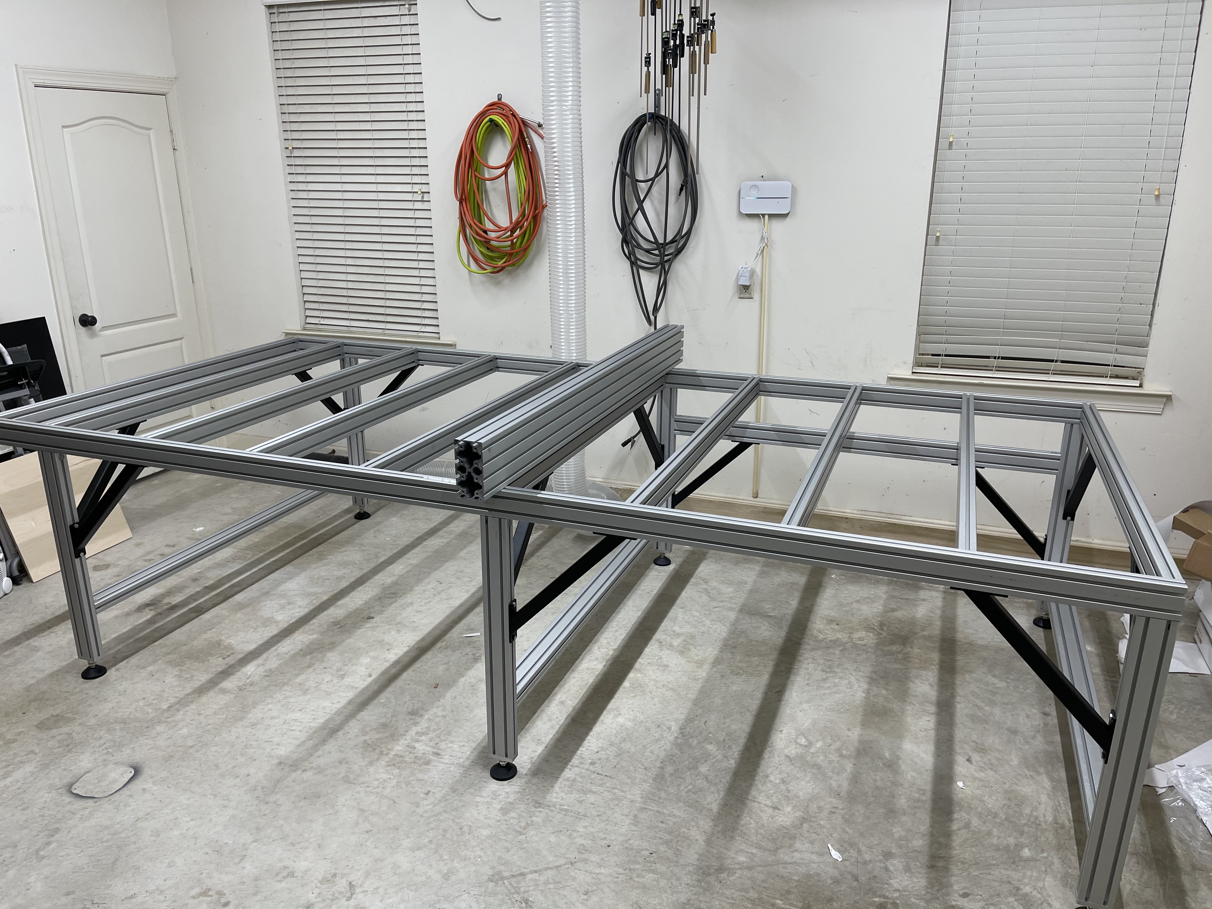 Finished running 6” vacuum line and setup automatic blast gate for the CNC. Time to start putting together my erector set.