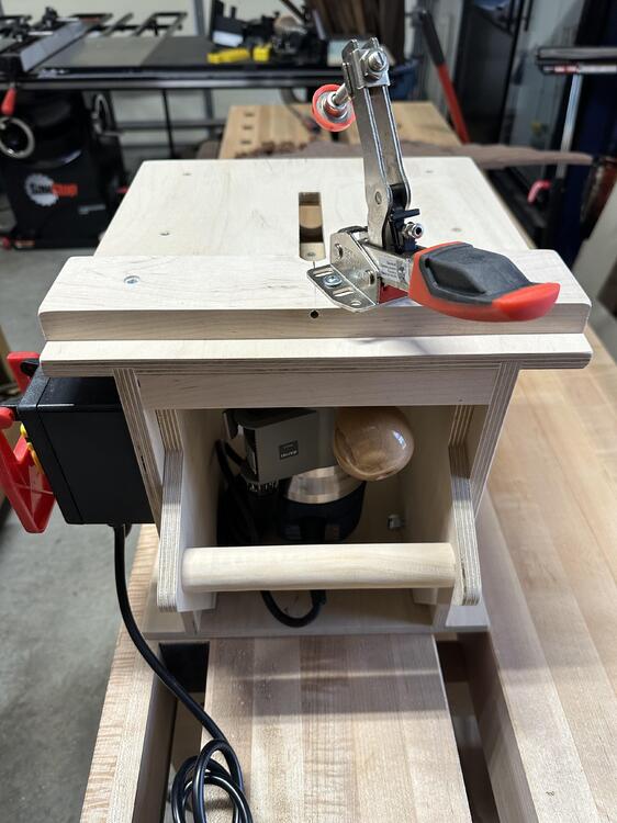 Tossed together this simple pocket hole machine. Just waiting on the router bit to show up to give it a try.