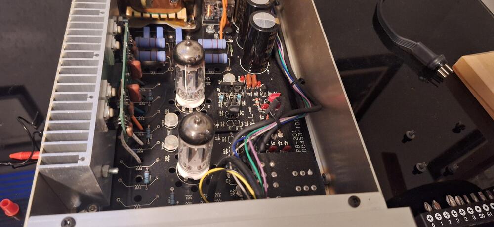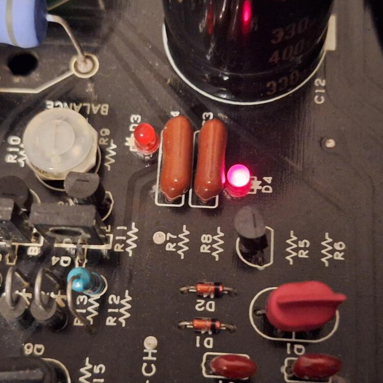 I have a CCS modded Stax SR-006t from Mjolnir Audio that stopped working back in September. For a few weeks I would get no sound until I turned it off and on, but now I get nothing. I've tried multiple sources and cables but no dice. I tested the DC offset between + and - of both channels and between the bias and both channels' - line. After that I tested the AC voltage playing a 1khz signal and followed it from the inputs to the vol control and got nothing. Spritzer repaired it back in April of 2023. The HV- line wasn't working due to a failed resistor and a capacitor was starting to fail. At the time the left channel was much quieter and had a buzzing noise before I stopped getting sound at all. It had no issues until September or August of last year. Any thoughts or help are appreciated. I attached some pictures of the amp. Nothing looks obviously amiss to me.