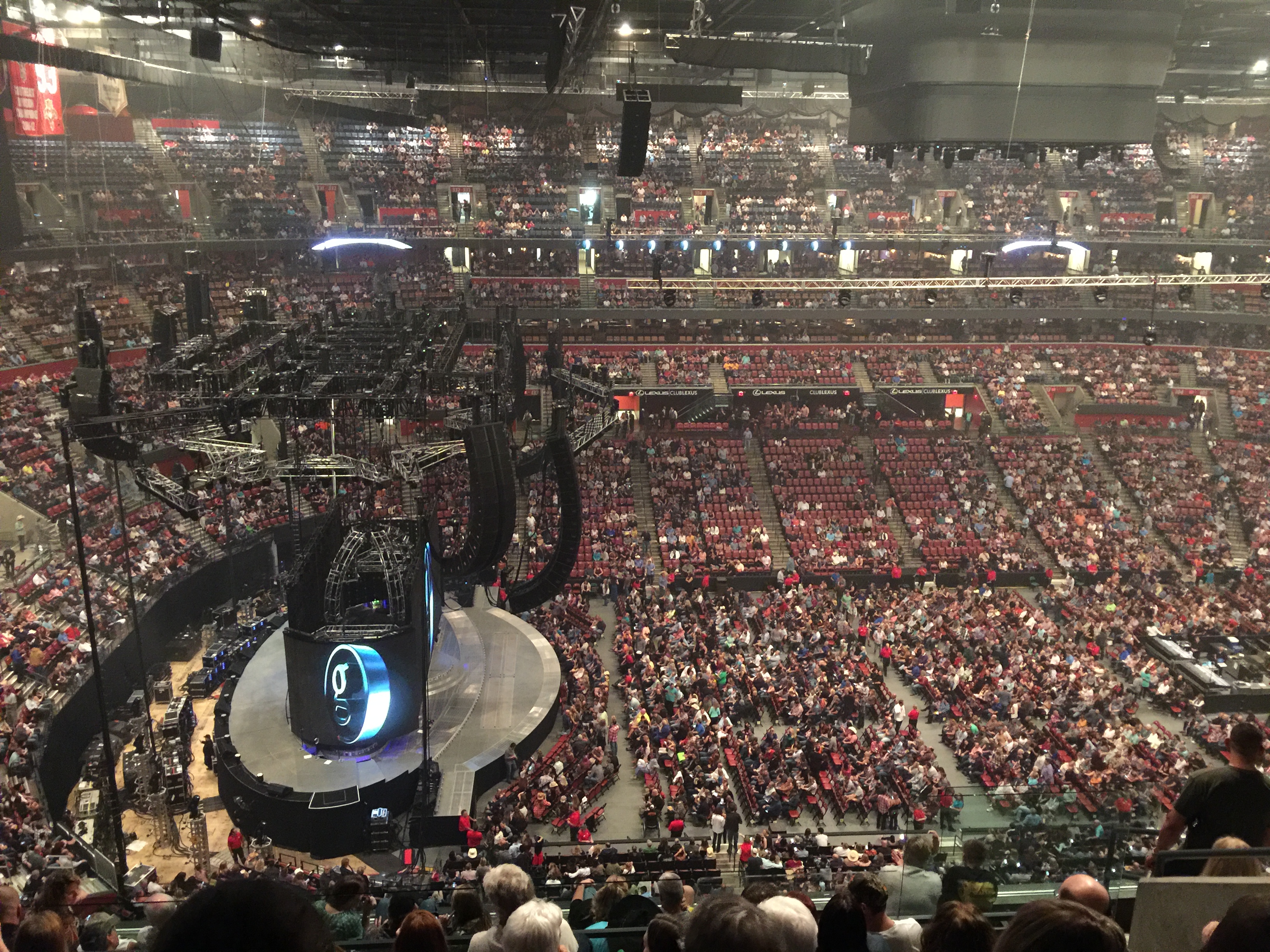 Julie got two tickets from work to a garth Brooks concert. Never heard country music before but she is a big fan so I tagged along. So far it's not too loud. But I doubt it will be this volume for much longer. I don't know where anyone else in the arena is though. Everyone is camouflaged quite well...