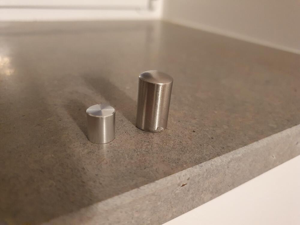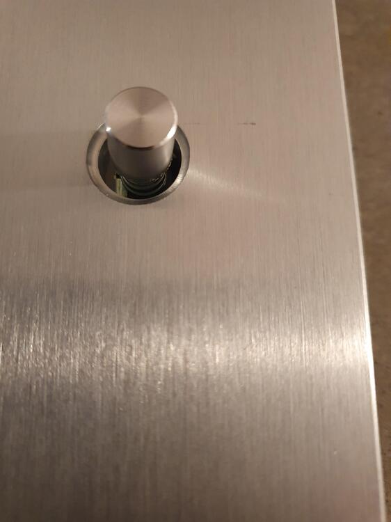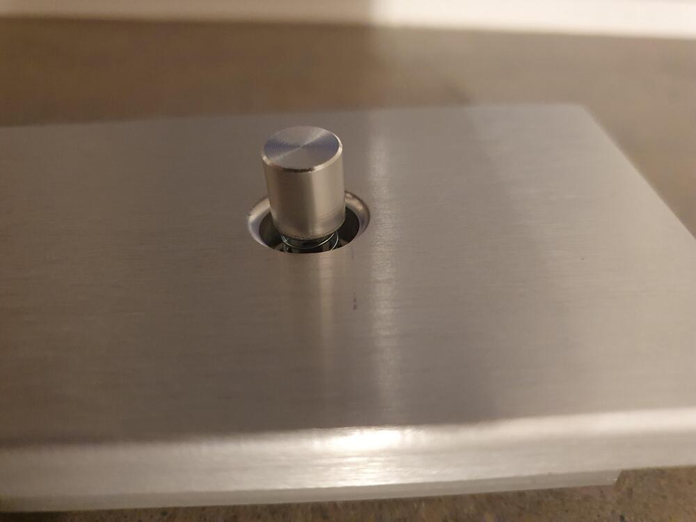 So when I got my case I got pretty upset with the looks of the power switch: So I search around the house for what could be used to improve this and found and unused aluminum kitchen drawer handle. Nice looks, hollow and easy to cut. A couple of minutes later: -