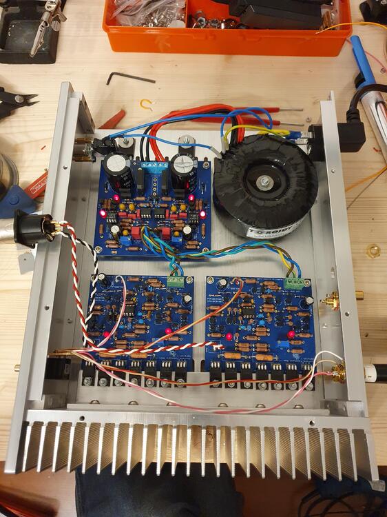 It's alive! Finished wiring today, only thing missing is drilling the front panel for the 4 pin XLR, waiting on a drill bit. Probably the best amplifier I had for the HD650. Absolutely dead silent, great sound! I'll need to make a better comparison with the dynalo mini, but at first glance it sure seems like a winner. Thanks for all the help I got during the build! -
