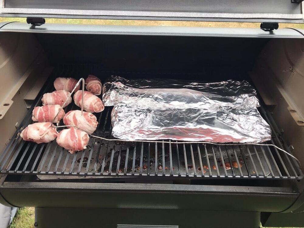 Decided to try some non-brisket things on the Traeger. 1. 3-2-1 ribs (rubbed, used too much brown sugar, will adjust down next time, but still came out great) After 3hrs in the smoke 2. Bacon wrapped armadillo eggs (stuffed jalapeƱos wrapped in sausage) ^^^These were delicious. Also, definitely not sad that I went with the bigger model Ironwood as I also tossed some chicken breasts on there for good measure and didn't have to to use the second shelf and worry about cross pollination from the non-pork product.