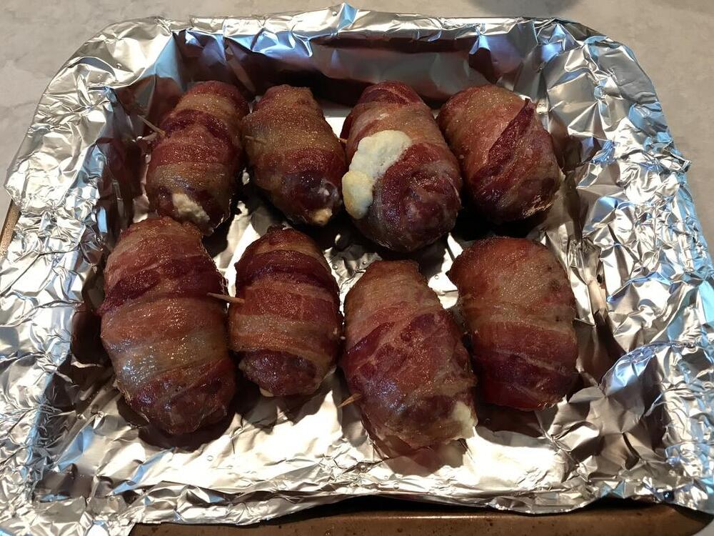 Yes, "traditional" armadillo eggs are just* sausage packed jalapeƱos stuffed with one's choice of cream cheese and cheese (that's my choice) and some add BBQ rub or spices too but I prefer au naturel. But then I found the recipe that said to wrap them in bacon and I was like, "Why the fuck not?" I definitely got a look or two while preparing them, but all objections were silenced upon sampling. I'm now imagining working any leftover bits, if there are such a thing, into an omelette. Because life deserves complicated breakfast. * Note that there is nothing just about non-bacon wrapped armadillo eggs. They too are delicious. But, you know, bacon and all that.