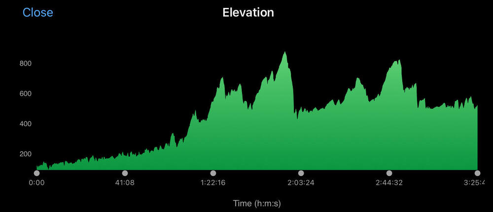 Thanks guys, it is a ride I’ve done once before and is in essence uphill the whole way. I mean yes, there are descents after the big climbs but as a point to point there’s a lot more up than down. And a persistent headwind out of the north was not something I’d bargained on. Oddly enough, what freaks most people out is my HR data. AVG: 158bpm, MAX: 178. Not too shabby for a 48 year old.