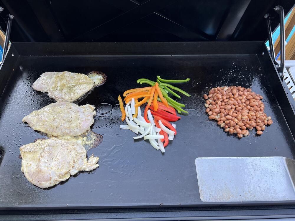 I've been getting to know the new flattop and liking it a lot. Made an epic breakfast sandwich on it this morning. Last night was fajitas.