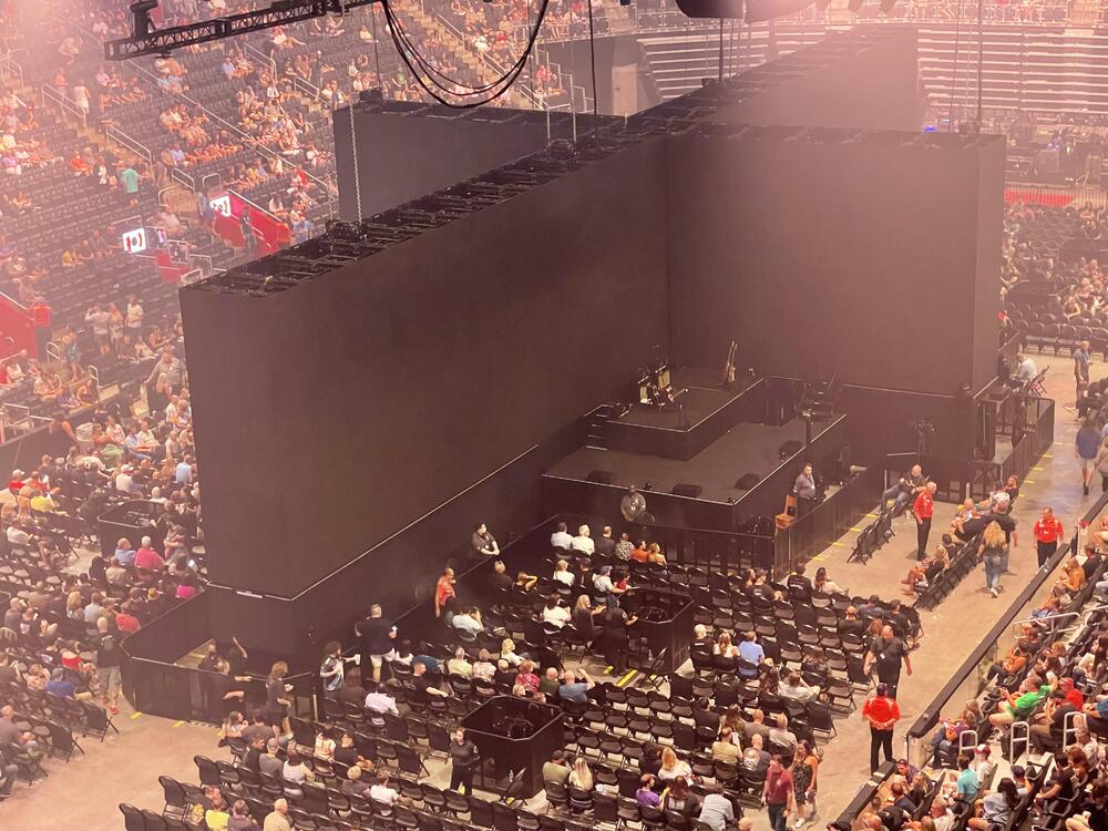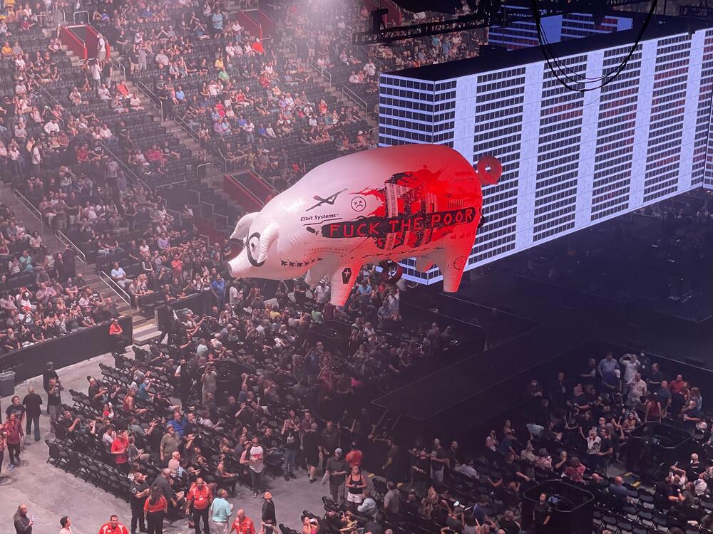 Not crazy about the show in the round. The screens lift up and of course lot's of political images and dialog on screen. My problem is I was up high (didn't quite qualify for nose bleed) with seats at the rail. Could not see the other side of the stage from my vantage point. Perhaps you could with lower seats. Not sure if I it is because I'm not used to in the round or that the stage facing the audience is actually a better experience. Roger is 78 years old. Missed some vocals and the people I talked to said it was his most politcal show yet. Enjoyed the show.